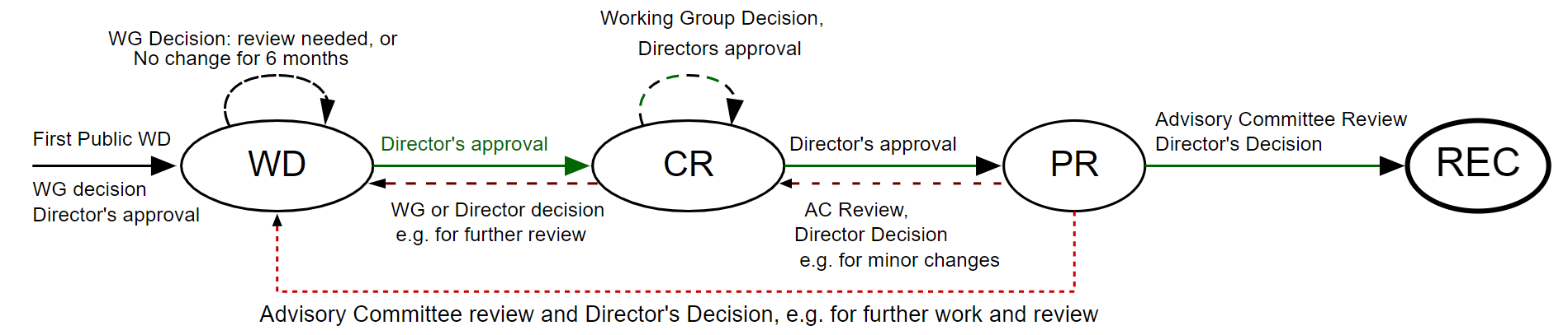 Poniżej widzicie generalny schemat procesu standaryzacji dokumentów W3C.